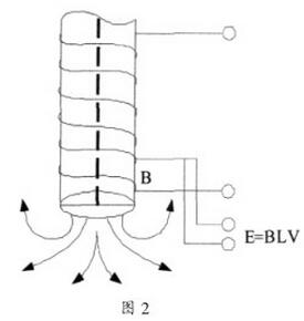 與一般污水流量計不同的是,插入式污水流量計的傳感器是外側形成外發射磁場,測量電極在傳感器的端部或兩側如圖2所示,值得注意的是,外發射磁場電磁流速傳感器的感應信號受流體和磁場的邊界層厚度影響,會降低測量的線性度。