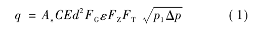 式中,、為標準狀態下天然氣體積流量,m; /s; A,為秒計量系數,視采用計量單位而定,此處A=311 794 x 10 -6; C為流出系數;E為漸近速度系數;d為孔板直徑,mm; F}為相對密度系數;。為可膨脹系數;F:為超壓縮因子;F:為流動溫度系數;P,為孔板上游側取壓孔氣流絕對靜壓,Pa;0P為氣流流經孔板時產生的壓差,Pao