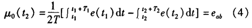 腐蝕性污水流量計(jì)一般都采用工頻交流電源供電,其電源電壓的幅值和頻率的變化都會(huì)給腐蝕性污水流量計(jì)帶來(lái)電源性干擾噪聲。對(duì)電源電壓的幅值變化,因采用多級(jí)集成穩(wěn)壓,一般而言電源電壓的幅值變化對(duì)電磁流量的測(cè)量精度影響不大。當(dāng)電源電壓的頻率波動(dòng)時(shí),雖然其波動(dòng)范圍有限,但對(duì)腐蝕性污水流量計(jì)測(cè)量精度影響較大。為了解決工頻干擾問(wèn)題,實(shí)現(xiàn)對(duì)流體流速感應(yīng)電勢(shì)e柚信號(hào)的準(zhǔn)確測(cè)量,需利用以下基本關(guān)系:①勵(lì)磁周期為工頻周期的整數(shù)倍,即勵(lì)磁頻率為50/nHz(n為偶數(shù));②正負(fù)勵(lì)磁下的同相位采樣。圖2是對(duì)應(yīng)低頻矩形波勵(lì)磁形式下的典型電勢(shì)信號(hào)形式,按上述關(guān)系在一個(gè)勵(lì)磁周期下,若假設(shè)t。和t:點(diǎn)為工頻干擾的等效干擾點(diǎn),且采樣寬度T=T1=T2,則e –ab的基本算式為:,