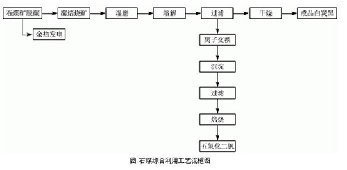 本項(xiàng)目為石煤綜合利用的項(xiàng)目。現(xiàn)有提釩工藝產(chǎn)生大量廢渣。其主要成分為二氧化硅,但其中夾帶有大量的釩資源,釩資源利用率低,同時(shí),該廢渣中堿含量較高,如將廢渣隨意堆放,易造成環(huán)境污染。本項(xiàng)目*大特點(diǎn)在于利用現(xiàn)有提釩工藝中的提釩二次渣作為制備沉淀法白炭黑的主要原料,將廢渣中的硅資源得到充分利用。為企業(yè)創(chuàng)造了新的經(jīng)濟(jì)增長點(diǎn),同時(shí),解決了現(xiàn)有提釩生產(chǎn)中造成的釩資源浪費(fèi)和環(huán)境污染問題,此外,該項(xiàng)目利用現(xiàn)有提釩生產(chǎn)線脫碳工序中產(chǎn)生的余熱作為加熱熱源,取代了傳統(tǒng)工藝以煙煤為主要燃料的方法,即對(duì)生產(chǎn)中產(chǎn)生的余熱得到了有效合理的利用,又進(jìn)一步降低了產(chǎn)生的燃料成本,達(dá)到了節(jié)能減排,資源綜合利用的目的,工藝流程框圖如下。