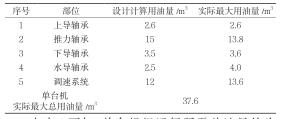 該水電廠于2013年5月至6月完成全廠4臺機(jī)組的投產(chǎn)運(yùn)行。在機(jī)組檢修期間復(fù)核計算、統(tǒng)計每臺機(jī)組實(shí)際用油量如表1所示。
