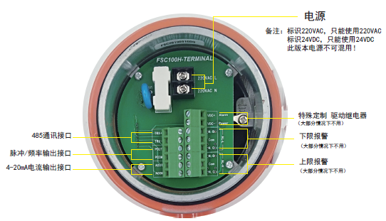 產品中會附帶使用說明書或其它安裝使用指導的資料,可以有效地幫助用戶快速準確的熟悉產品和使用產品。一般污水流量計實物接線圖中會清晰的標注每個接線端子是如何接的,污水流量計的接線端子一般會含有電源線(220VAC/24VDC)、信號輸出(4-20mA/RS485/脈沖/HART)、流量上下限報警輸出或帶有特殊定制驅動繼電器輸出等。實際接線根據要求來定。