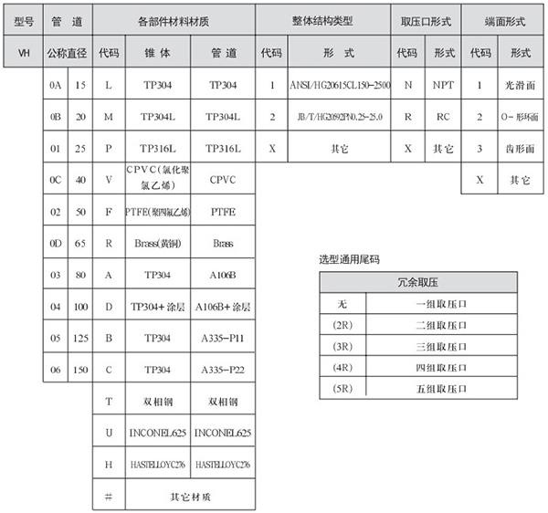 1、防腐式錐形流量計(VA)選型
