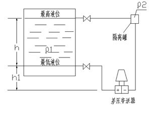 正負壓室的壓差為:△Р= P+ - P- = Hρ1+h1ρ2 -h2ρ2