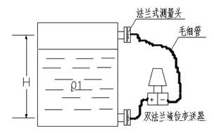 這時差壓變送器正壓室的壓力為:P+ = Hρ1+ h1ρ2+P0