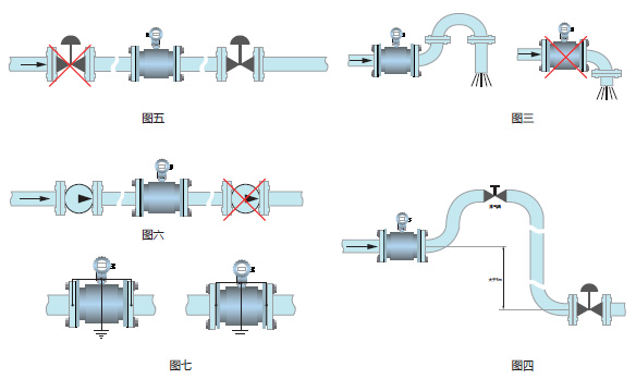 液體電磁流量計(jì)對(duì)安裝點(diǎn)的上、下游工藝管有一定的要求,否則影響測(cè)量精度。